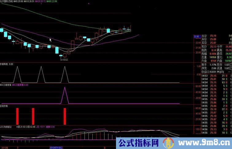 我今天也许是关门贴了,以前我说过请注意收藏指标,指标有时就像一辆车,给你一架发动机,它也不成车,再给你四个轮子它也不是一辆车,它必须有车架还有其它附件才能组合成一辆能开的车,就像指标一样,靠一个指标是不能确立信号是否准确,以前发的抄底特准,抄底红柱,另外MACD背离自己在论坛中找,以上三个信号同时出现(直接可用抄底特准选股)选出的股票,再加上我现在发的MACD+KDJ指标,KDJ的J值在20以下,MACD 是绿线或是第一根紫色线最好,这一定是必须遵守的原则,一般买进持股不超过五个交易日,让你净赚10%以上,信号不是天天有,股票也不是天天可以做,最重要一点是必须在尾盘买进,这样可以确定信号的100%,一年做上几次,保你利润是净增,多看少动,坚持原则,你才是最大的羸家。