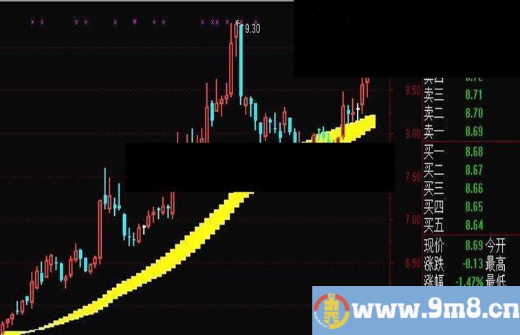 STICKLINE(C>=MA(C,N),MA(C,N),MA(C,N*0.78),4,0),COLORYELLOW;