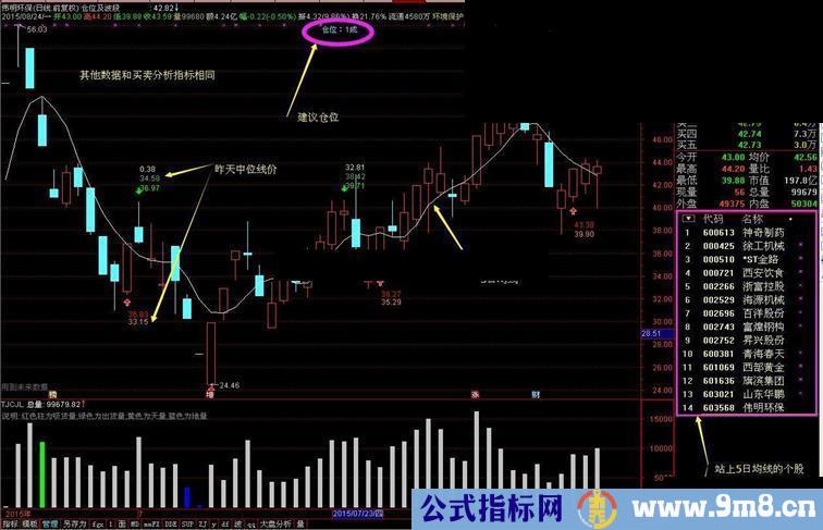 这指标是趋势决定仓位,与个股相对应的大盘站上5日均线得3分,与个股相对应的行业板块站上5日均线得2分,个股站上5日均线得1分,最高6分,即6成仓。