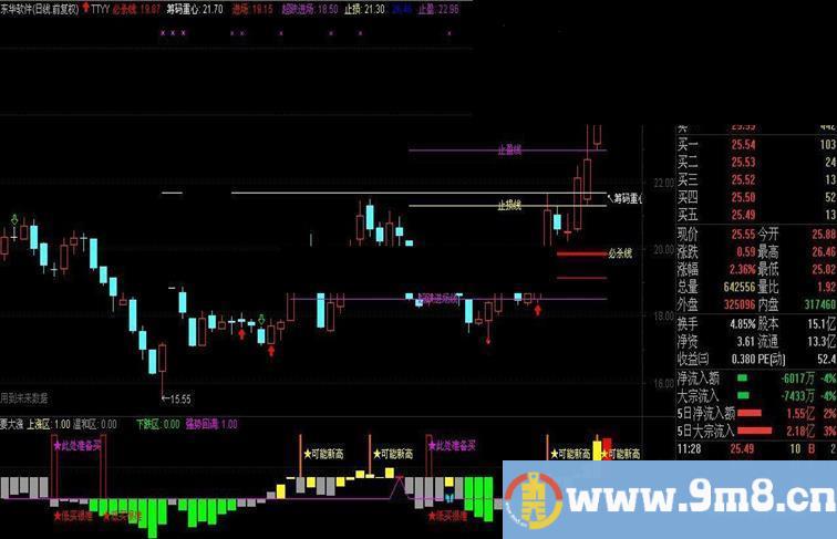 DRAWTEXT(CURRBARSCOUNT=INTPART((WH2+21)*0.618),进场,'进场线'),COLORRED;