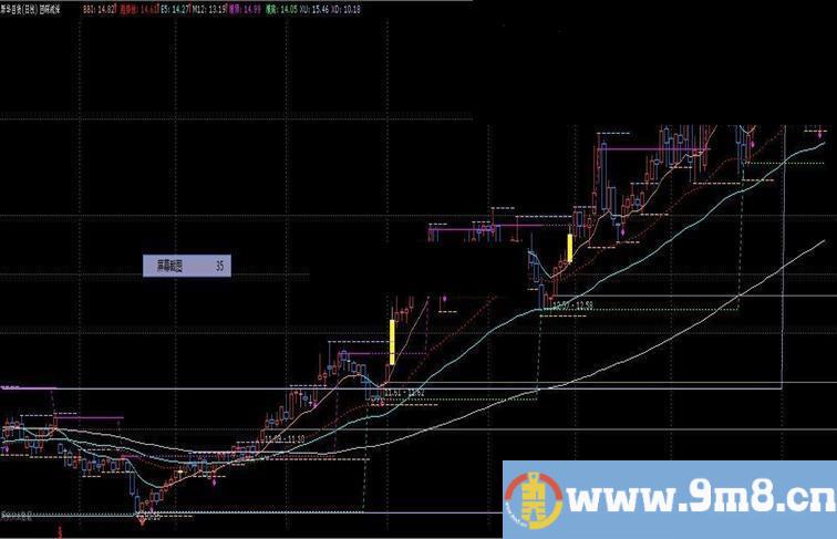 安全线:=MA(C,19),LINETHICK2,COLORYELLOW;