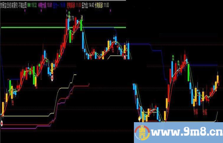 绿轨道:MA(MA(CLOSE,3),3),COLORGREEN;
