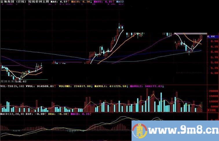 买进价:=((C-REF(MA6,1))/6+MA6)*1.004;