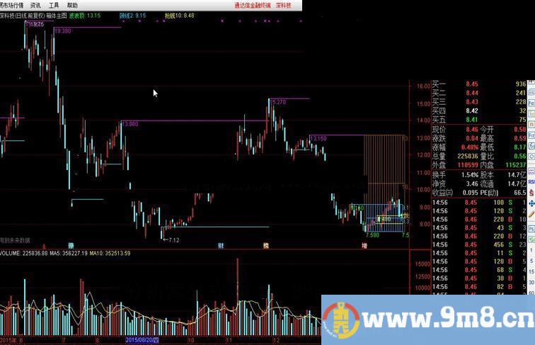 波浪底:=IF(T2,B,B),COLORGREEN{,POINTDOT},LINETHICK1;