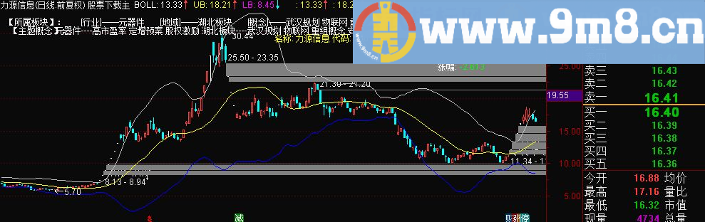 通通达信主图BOLL叠加指标,加入了 板块、概念、浮动涨幅换手等 ,希望给股友带去帮助~~