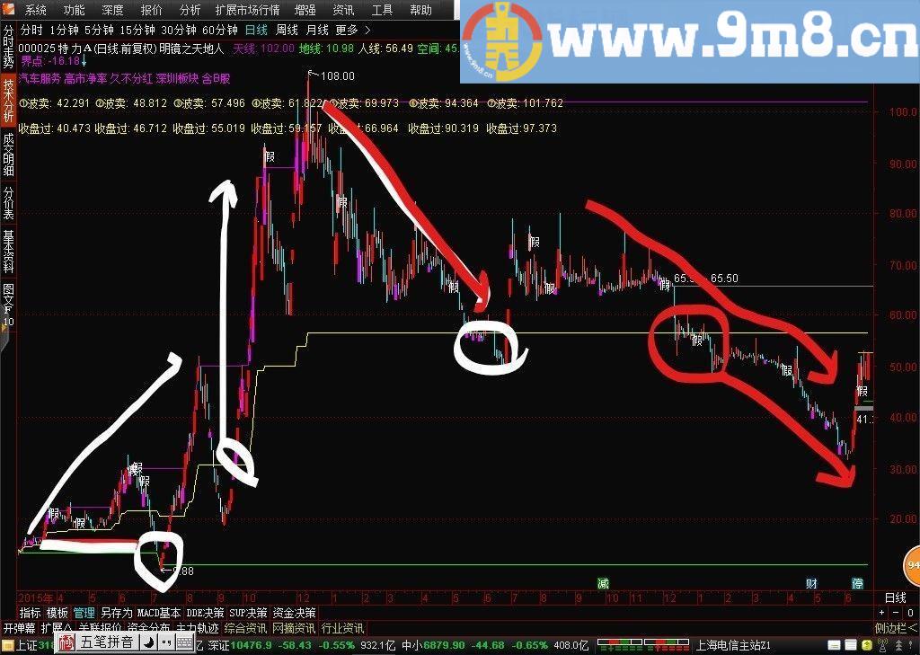 2、最大的特色:就是带有七个波段指导卖出价参考,准确率高达90%左右,甚至可以讲是99%。