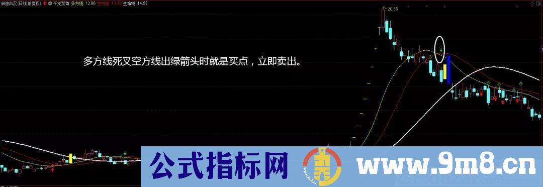 3、卖点:多方线死叉空方线出绿箭头时就是买点,立即卖出。