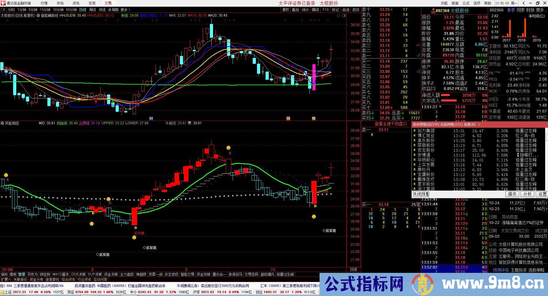指标来源于网络,从使用效果看,只要笑脸和B点同时出现再配合主声浪信号,成功率还是能够对起指标的,分享给大家,希望帮助到更多的股友。