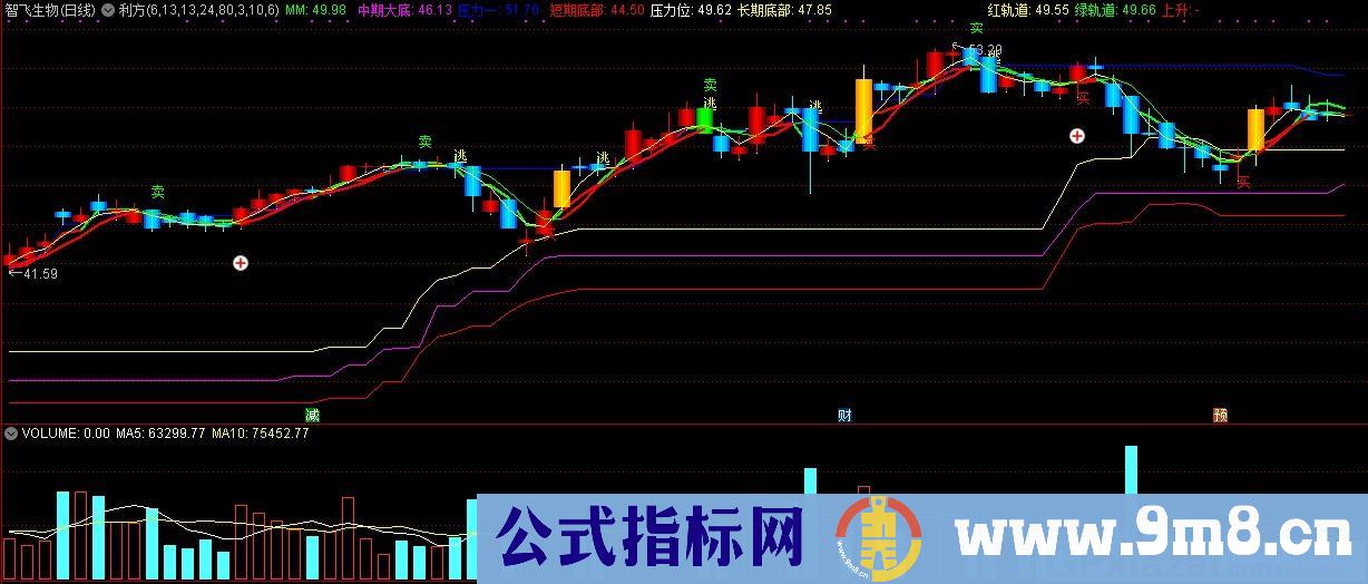 AND (SMA(CLOSE,2,1) = MA80)),8),LOW,'底'),COLORFF00FF;