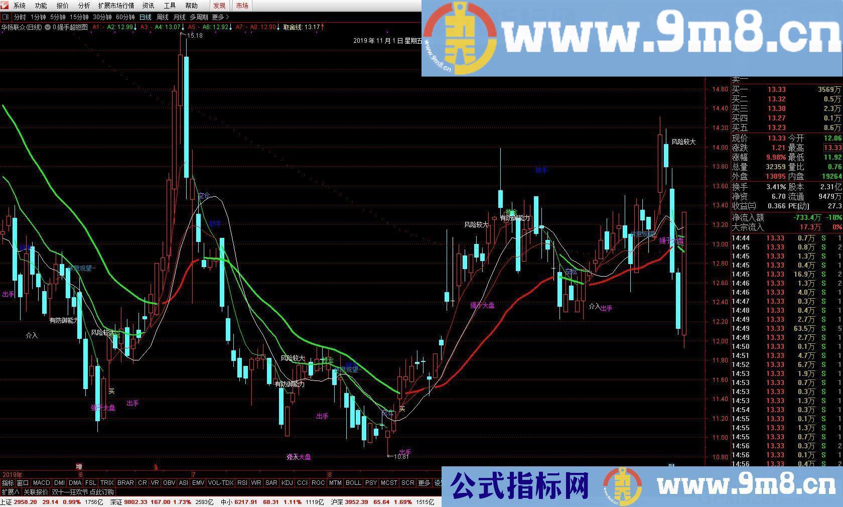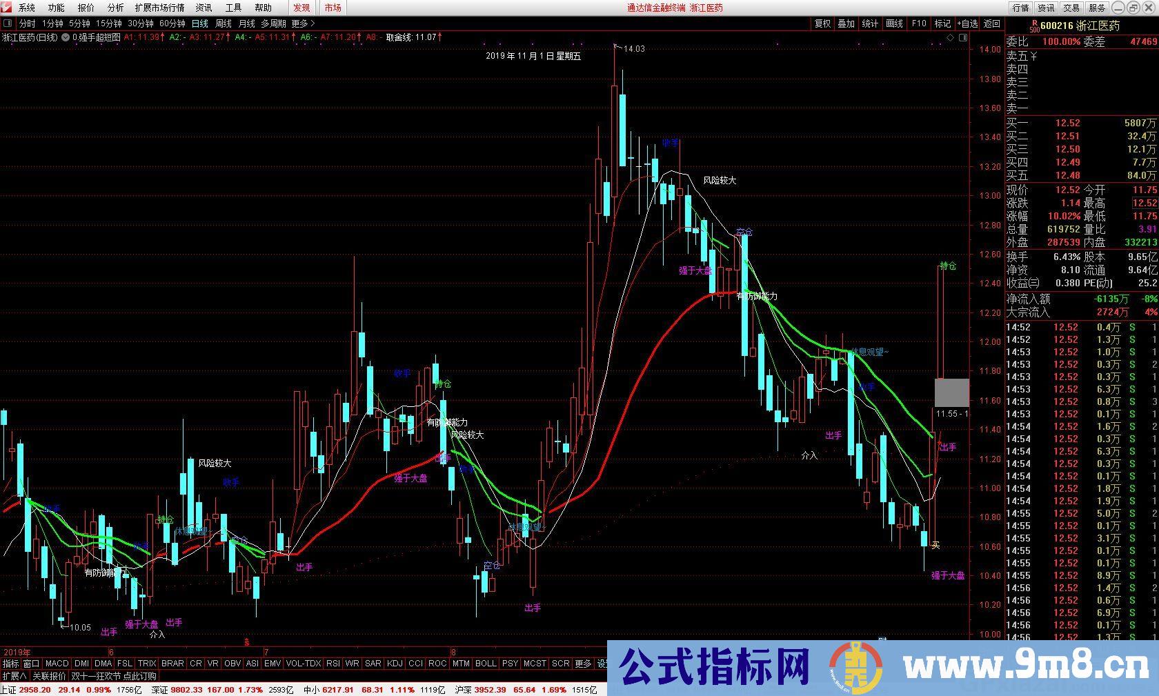 通达信强手超短是一款无未来函数的主图指标.操盘趋势清晰明了.不用多讲.一切尽在盘面中.喜欢的朋友们共享了.另外提醒朋友再好的指标也只是辅助自己的交易判断,不可迷信指标!