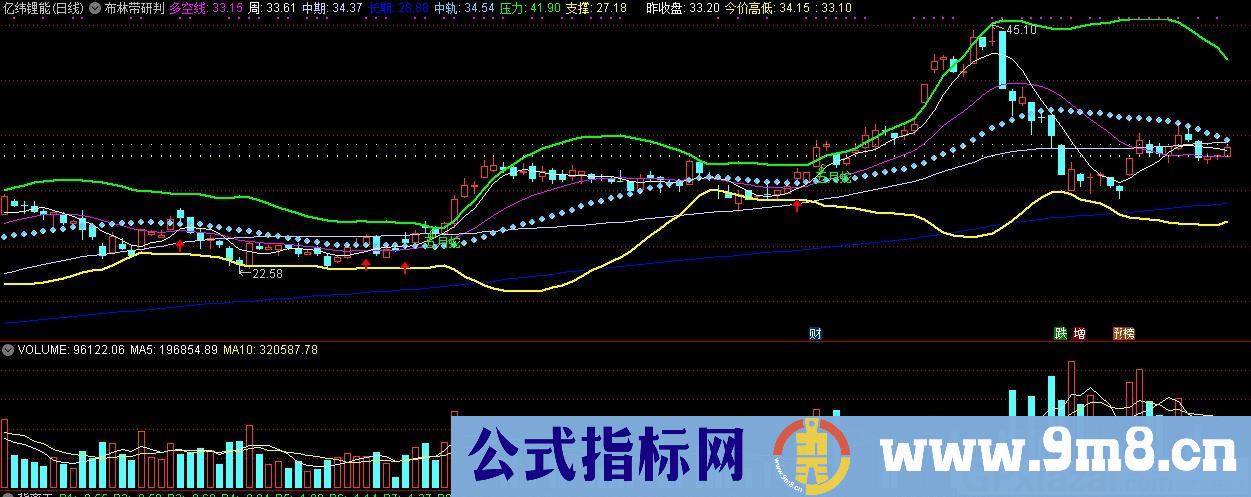 支撑:中轨-2*STD(VAR1,26),COLORYELLOW,,LINETHICK2;
