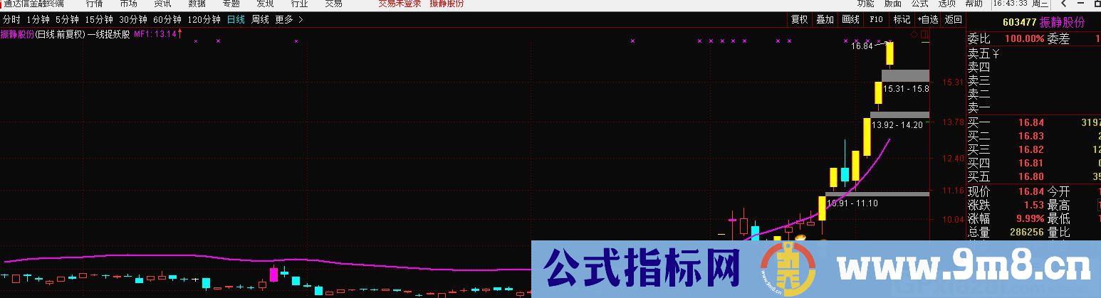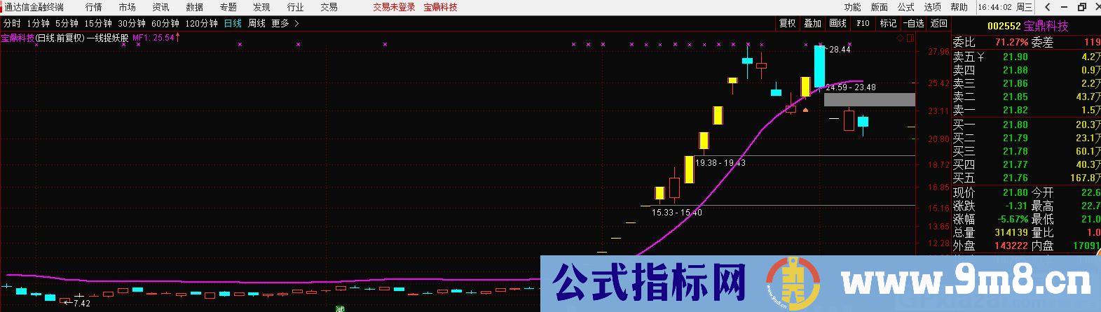 一线捉妖股 很不错的指标 通达信主图指标 贴图 该指标是很久以前别人分享的,个人觉得很不错,值得一看,使用该指标时,最好的市场风险较小的时候,其他的不多说,看图吧 点击下载一线捉妖股 很不错的指标 通达信主图指标 贴图