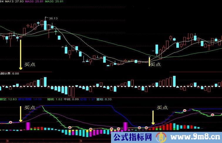 波峰波谷:SMA(拉升力A,3,1),COLORFF00FF;