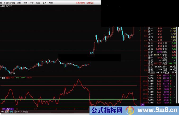 圈线:100*(HHV(HIGH,N)-C)/(HHV(HIGH,N)-LLV(LOW,N)),COLORRED,LINETHICK2;