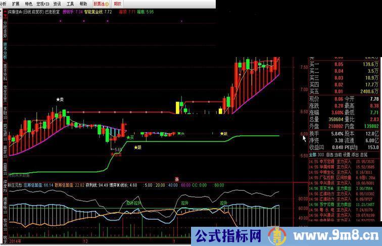 上高:=H;上低:=L;JJ:=(上开+上高+上低)/3;A:=EMA(JJ,4);智能黄金线:A,COLORYELLOW,LINETHICK1;