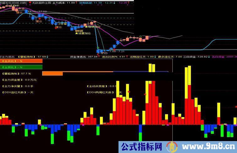资金净进出:IF((HSL*0.4+LLJX)>0,资金流入,资金流出),COLORWHITE,POINTDOT;