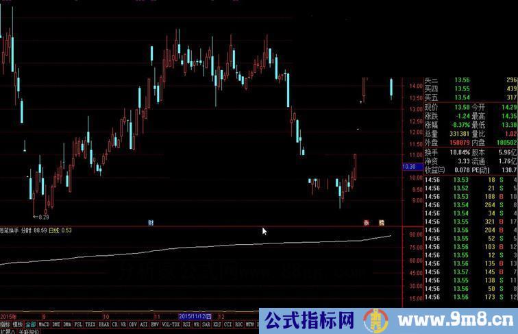{分时:SUM(V,0)/CAPITAL*100/DYNAINFO(50);}{显示小数点后四位}