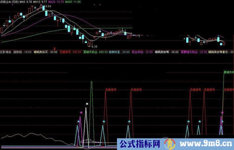 DRAWTEXT(BB,300,'见底信号'),COLORRED;