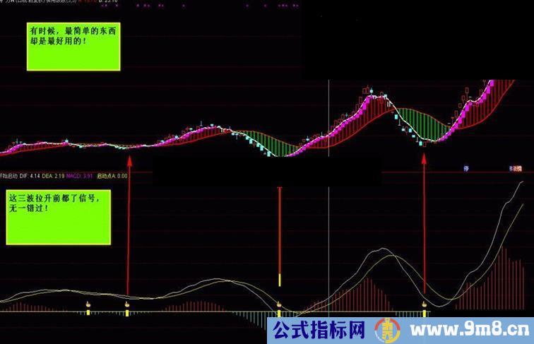 启动点:=MACD<0 AND MACD>REF(MACD ,1) AND REF(MACD ,1) AND REF(MACD ,2) AND REF(MACD ,3) STICKLINE(启动点,0.4,MACD,2,0),COLORYELLOW;