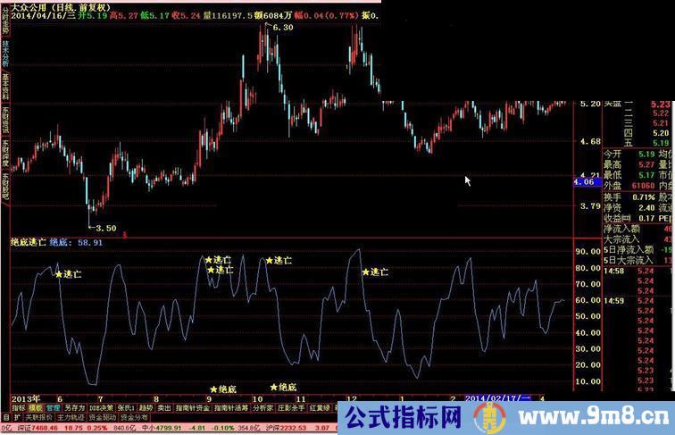逃亡:=IF(绝底< REF(绝底,2) AND 绝底>75,绝底,0);