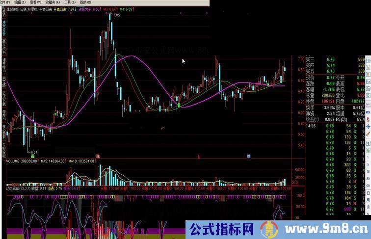 准备:(IF(((动向趋势线 > 88) AND (神偷线 < 5.8)),68,0)),LINETHICK1,COLORFF00FF;