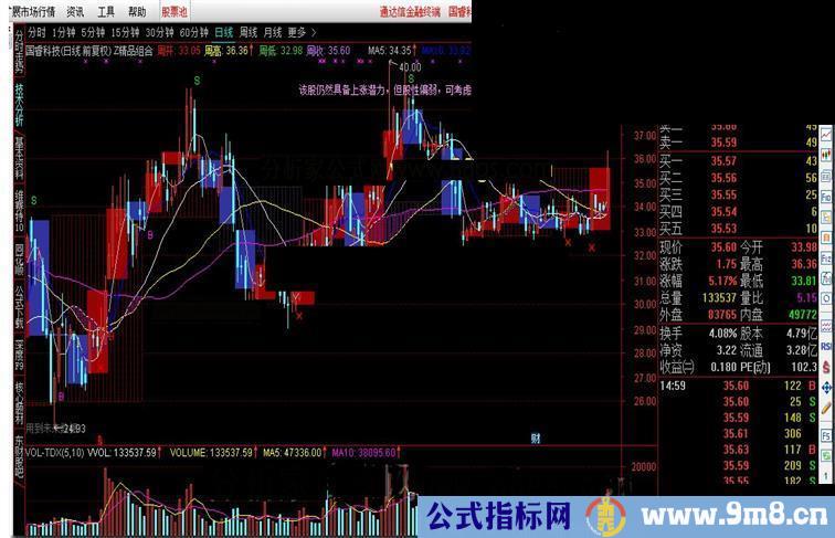 DRAWTEXT(T9=1 AND CURRBARSCOUNT=80,AAA-(AAA*0.03),'该股形态良好,强势明显,量能充足,可以继续持有'),COLORRED ;