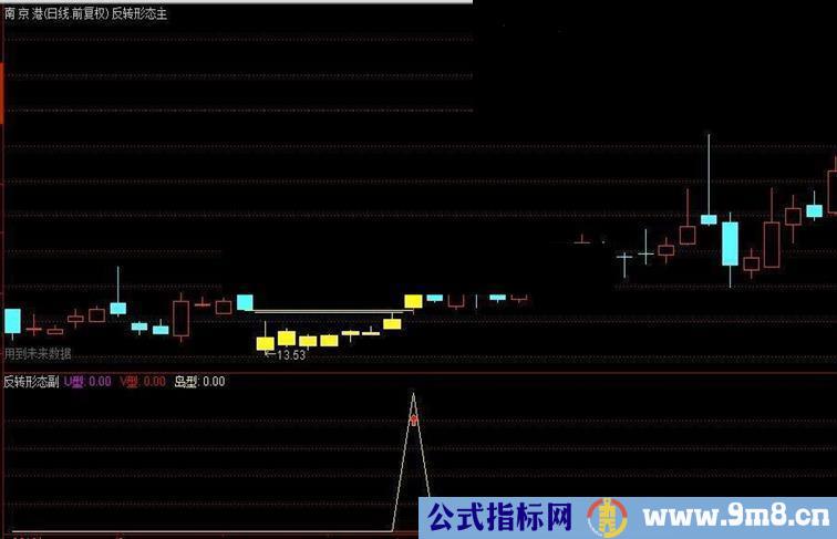 周末无聊,将论坛大神的三个不同的反转形态(分别是V型反转,U型反转和岛形反转)组合在一个指标里,更加方便看图,觉得有用的就拿去耍.向原作者致敬,有改动,侵删!