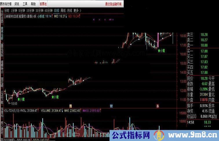 小妖线:EMA(CLOSE,20),COLORCYAN,DOTLINE;