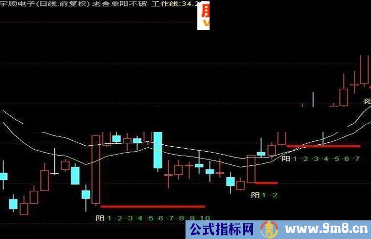 STICKLINE(单阳不破,不破价-不破价*0.002,不破价,4,0),COLORRED;
