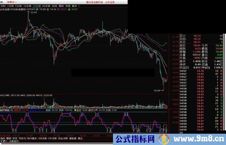 在弱势中宜抓多个信号出击的股票,如底部和抄底信号出现都为0,同时配合黄金区15和底部柱状线出击,成功的概率相当大。在强势中一般出现1、2个出击信号就可根据分时操盘抄作一把。