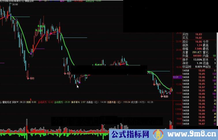 主动买盘:=IF(CLOSE>OPEN,AA*(HIGH-LOW),IF(CLOSE (CLOSE-LOW)),VOL/2)),POINTDOT,COLORRED; 主动买万:主动买盘/10000,COLORRED,NODRAW; 主动卖盘:=IF(CLOSE>OPEN,0-AA*((HIGH-CLOSE)+(OPEN-LOW)),IF(CLOSE 0-AA*(HIGH-LOW),0-VOL/2)),LINETHICK0,COLORGREEN; 主动卖万:主动卖盘/10000,COLORGREEN,NODRAW; 换手率%:VOL/CAPITAL*100,POINTDOT,COLORYELLOW; 流通盘(亿):CAPITAL/1000000,POINTDOT; 流通市值(亿):(CAPITAL/100*C)/10000,POINTDOT,COLOR33CCFF; 成交额(千万):AMOUNT/10000000,POINTDOT; STICKLINE(主动买盘>0,0,VOL,2,1),COLORWHITE; STICKLINE(主动买盘>0,0,主动买盘,2,0),COLORRED; STICKLINE(主动卖盘<0,0,主动卖盘,2,0),COLORGREEN;