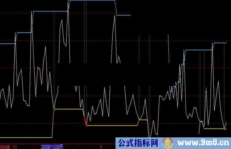 动态地量:IF(V=LLV(V,20),V,REF(V,BARSLAST(V=LLV(V,20)))),COLORYELLOW;