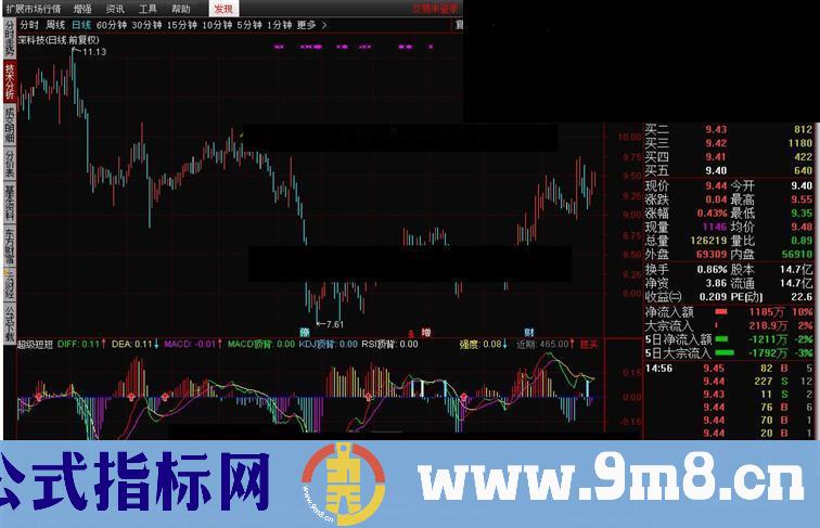 B1:=REF(C,A1+1)>C AND REF(DIFF,A1+1) A2:=BARSLAST(REF(CROSS("KDJ.K"(9,3,3),"KDJ.D"(9,3,3)),1)); B2:=REF(C,A2+1)>C AND REF("KDJ.K"(9,3,3),A2+1)<"KDJ.K"(9,3,3) AND CROSS("KDJ.K"(9,3,3),"KDJ.D"(9,3,3)); A3:=BARSLAST(REF(CROSS("RSI.RSI1"(6,12,24),"RSI.RSI2"(6,12,24)),1)); B3:=REF(C,A3+1)>C AND REF("RSI.RSI1"(6,12,24),A3+1)<"RSI.RSI1"(6,12,24) AND CROSS("RSI.RSI1"(6,12,24),"RSI.RSI2"(6,12,24)); C1:=BARSLAST(REF(CROSS(DEA,DIFF),1)); D1:=REF(C,C1+1) C2:=BARSLAST(REF(CROSS("KDJ.D"(9,3,3),"KDJ.K"(9,3,3)),1)); D2:=REF(C,C2+1) C3:=BARSLAST(REF(CROSS("RSI.RSI2"(6,12,24),"RSI.RSI1"(6,12,24)),1)); D3:=REF(C,C3+1) {MACD底背:IF(B1>0,-0.1,0),COLORRED,POINTDOT; KDJ底背:IF(B2>0,-0.1,0),COLORFF00FF,POINTDOT; RSI底背:IF(B3>0,-0.1,0),COLORYELLOW,POINTDOT;} MACD顶背:IF(D1>0,0.1,0),COLOR00FF00,POINTDOT; KDJ顶背:IF(D2>0,0.1,0),COLORFFCC66,POINTDOT; RSI顶背:IF(D3>0,0.1,0),COLORWHITE,POINTDOT; {STICKLINE(B1>0,-0.1,0,2,0),COLORRED; STICKLINE(B2>0,-0.1,0,2,0),COLORFF00FF; STICKLINE(B3>0,-0.1,0,2,0),COLORYELLOW;} STICKLINE(D1>0,0.1,0,2,0),COLOR00FF00; STICKLINE(D2>0,0.1,0,2,0),COLORFFCC66; STICKLINE(D3>0,0.1,0,2,0),COLORWHITE; STICKLINE(MACD>REF(MACD,1) AND MACD>0,0,MACD,0,0),COLORRED; STICKLINE(MACD<=REF(MACD,1) AND MACD>0,0,MACD,0,0),COLORYELLOW; STICKLINE(MACD