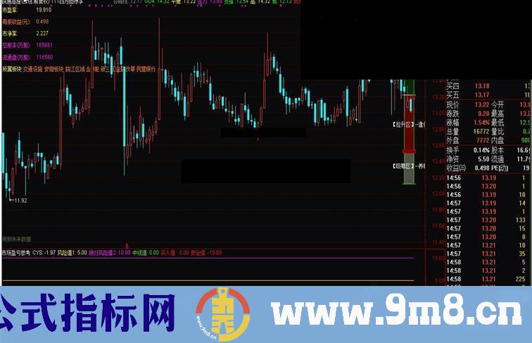 此指标是在系统市场盈亏指标的基础上加了几条线,判定买卖股票操作。