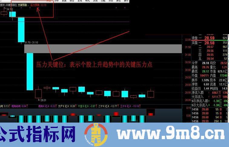 DRAWTEXT(ISLASTBAR,压力预测,STRCAT(' 【压力关键位】 ',STRCAT(CON2STR(压力预测,2),' 元'))),COLORFFFFFF,LINETHICK1;