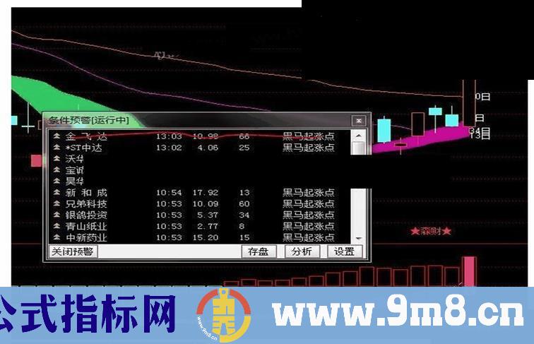 九毛八公式指标 » 通达信 黑马起涨点条件预警指标公式 加入收藏