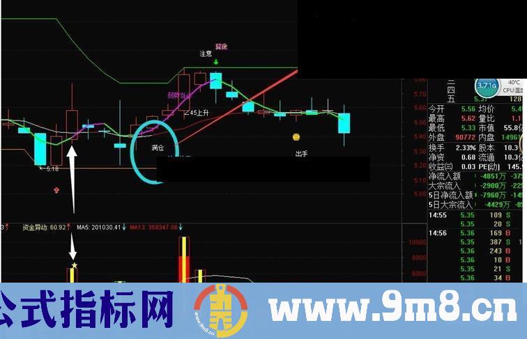 STICKLINE(资金异动>100 ,0,VOL,0.6,0),COLORYELLOW;