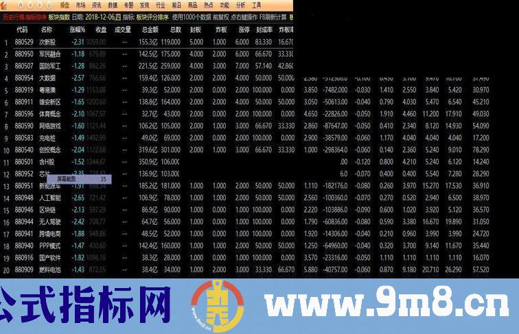 涨停:CLOSE>=ZTPRICE(REF(CLOSE,1),0.1);{统计板块涨停数}