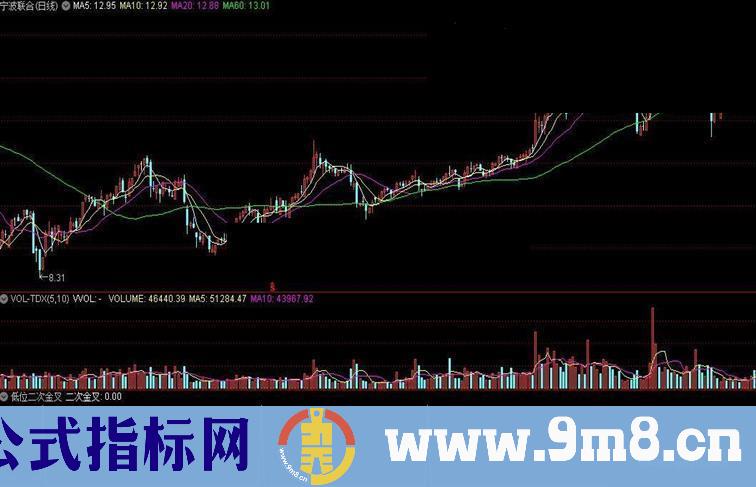 二次金叉:CROSS(DIFF,DEA) AND DEA<0 AND COUNT(JCCOUNT=2,21)=1;