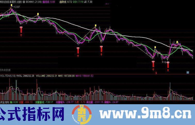 流量幅%:IF(((LLJX > 0) AND (ZJLL < 0)),ABS(QZJJ),IF((((LLJX < 0) AND (ZJLL < 0)) AND (LLJX < ZJLL)),(0 - QZJJ),QZJJ))COLORMAGENTA,NODRAW;