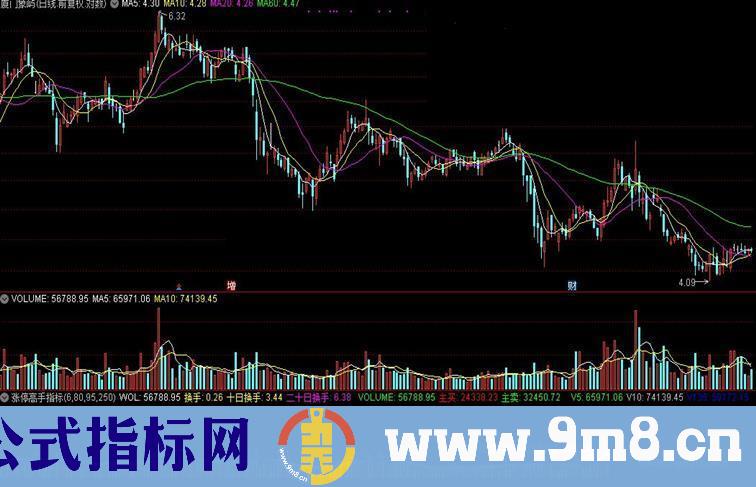 DRAWTEXT(CURRBARSCOUNT=80,HHV(V,80)*0.95,'20日换手>30出绿箭头,>80出桔子'),COLOR00FFFF;