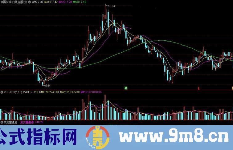 成交量通道:量均线,COLORMAGENTA,LINETHICK2;