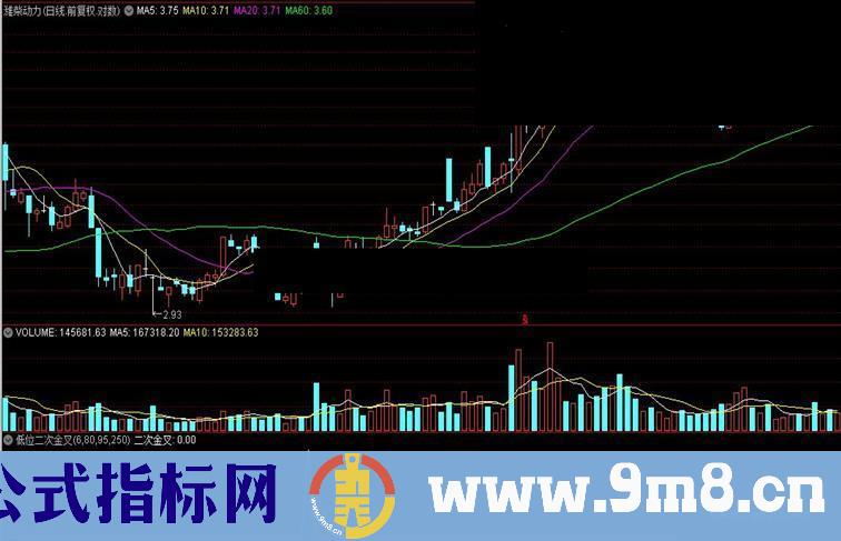 二次金叉:CROSS(DIFF,DEA) AND DEA<0 AND COUNT(JCCOUNT=2,21)=1;