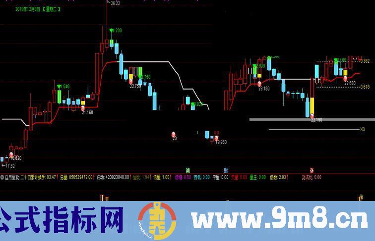 分割点1:IF(CURRBARSCOUNT<=10,高J-(高J-低J)*0.382,DRAWNULL),COLORWHITE,DOTLINE;