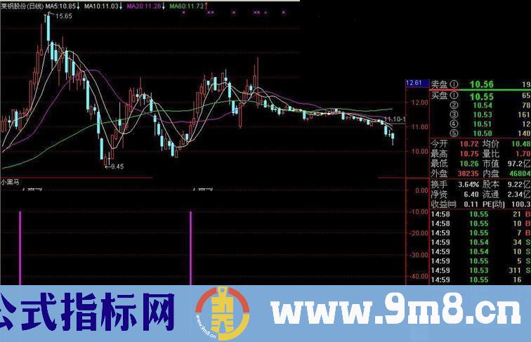 小黑马:=MA(A,180),COLORFF00FF,LINETHICK1;