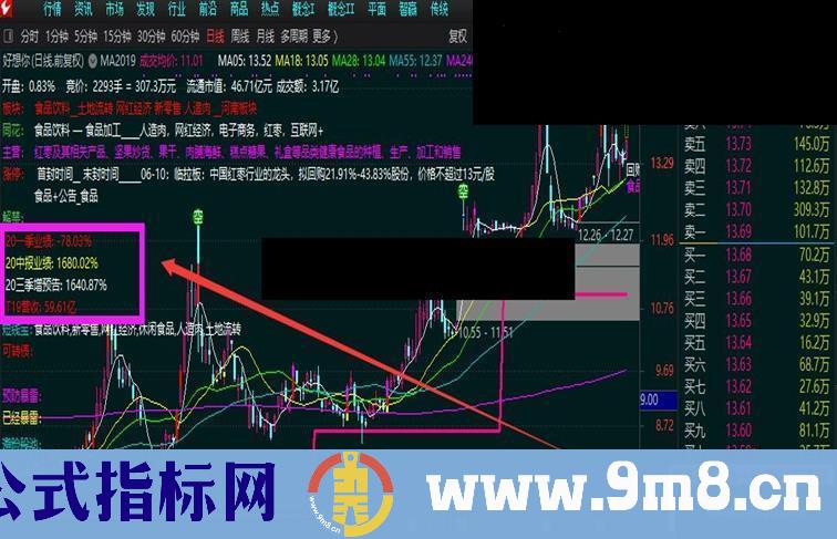 快速筛选的方法:直接调用FINONE、FINVALUE函数,做成主图指标: