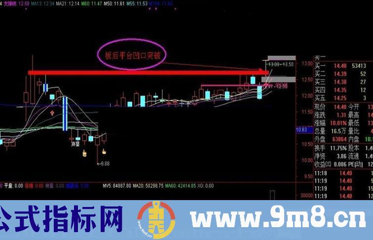 找热点题材或板块,集体启动时,就要找技术上的启动点,通过突破凹口线我们完全可以捕捉启动点。确认板块启动后,可以用凹口量价线来捕捉启动点,根据个股的形态位置选择涨幅较小,量价关系良好,处于蓄势突破的个股进行操作!