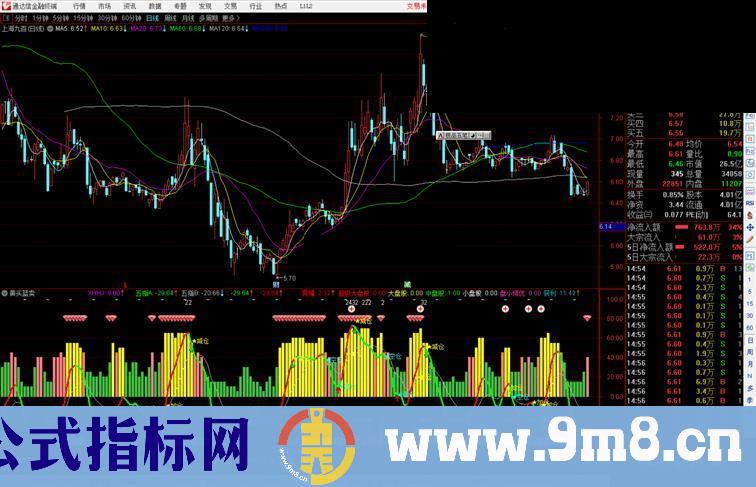 {指标介绍:能量线、RSI3、KDJ、W&R、CCI五个指标共振线,[红]、[绿]变化是买卖信号,颜色及标记是配合信号,重点关注60分MACD和周K拐头、周K金叉。}