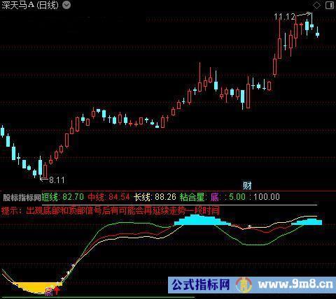 DRAWTEXT_FIX(1,0.00,0.00,0,'提示:出现底部和顶部信号后有可能会再延续走势一段时间'),COLOR0000FF;