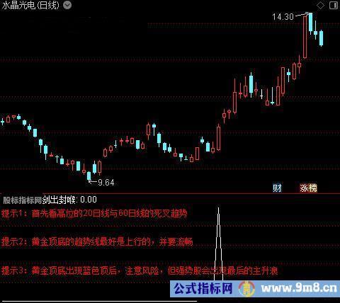 DRAWTEXT_FIX(1,0.00,0.60,0,'提示3:黄金顶底出现蓝色顶后,注意风险,但强势股会出现最后的主升浪'),COLOR0000FF;